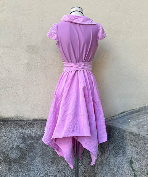 The unique dress convinces with its natural material and playful pattern. The belt from the same material is added independently while particular design offers a shiny variation. An excellent choice for anyone who does not want to be in a safe distance from the lost average taste.
