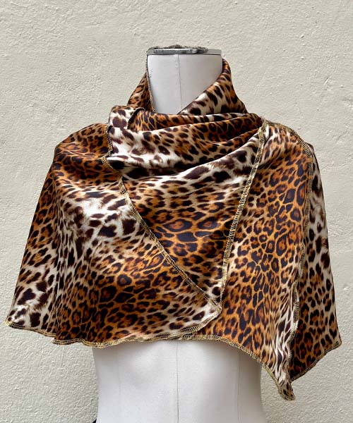 A unique scarf is made of several types of soft and pleasant fabric with gently shiny appearance. The gorgeous proportions of scarf allow you different types of wearing while you can diversify your entire appearance. The shape of the circles was added by hand screen printing. And last but not least: you can cover even those parts of your body that might remain in the cold!