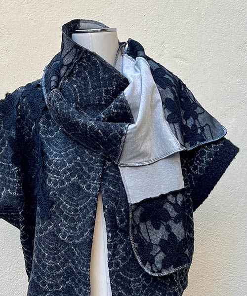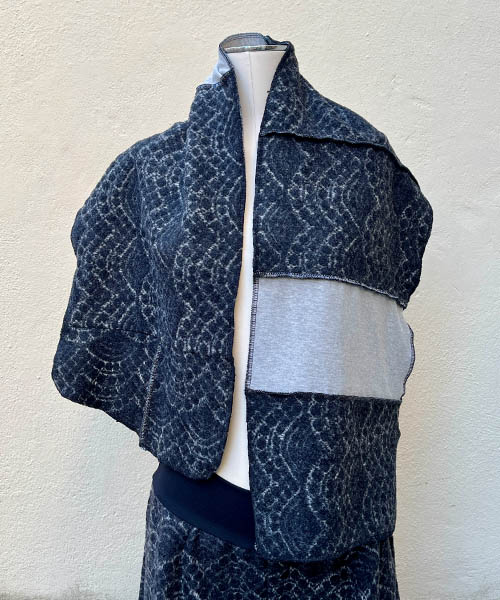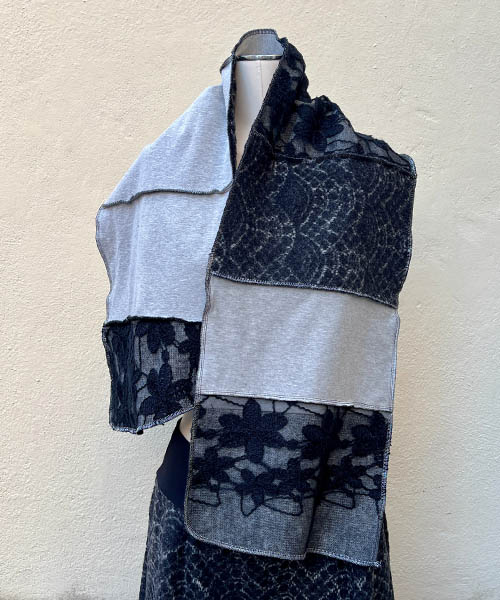 A unique scarf is made of several types of soft and pleasant fabric with gently shiny appearance. The gorgeous proportions of scarf allow you different types of wearing while you can diversify your entire appearance. The shape of the circles was added by hand screen printing. And last but not least: you can cover even those parts of your body that might remain in the cold!