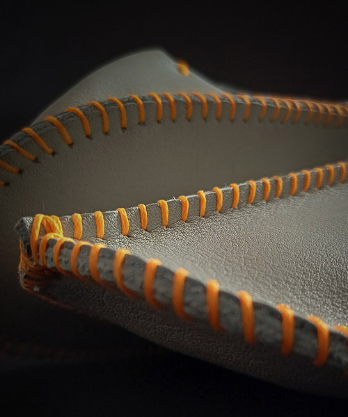 Soft mint with orange stitching