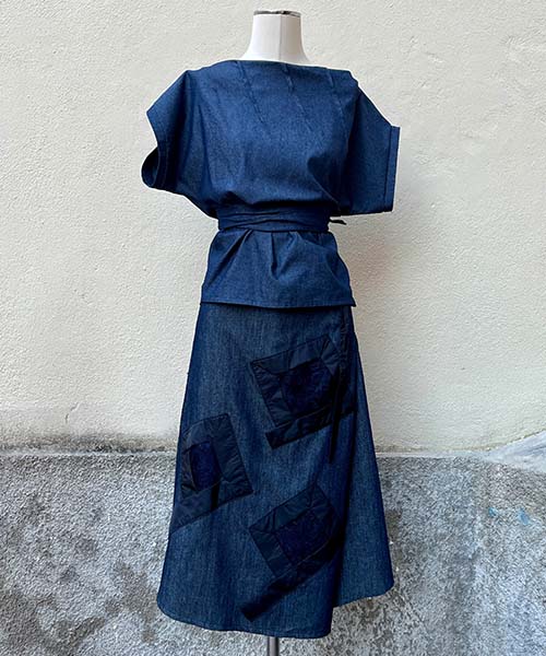 Unikatno krilo z aplikacijami se igrivo prepleta s funkcijo preklopa in ustvarja svojevrstno harmonijo. Velikost se nastavlja z gumbom ob strani, podrobnosti materiala pa ustvarjajo krilo nenavadno in posebno.