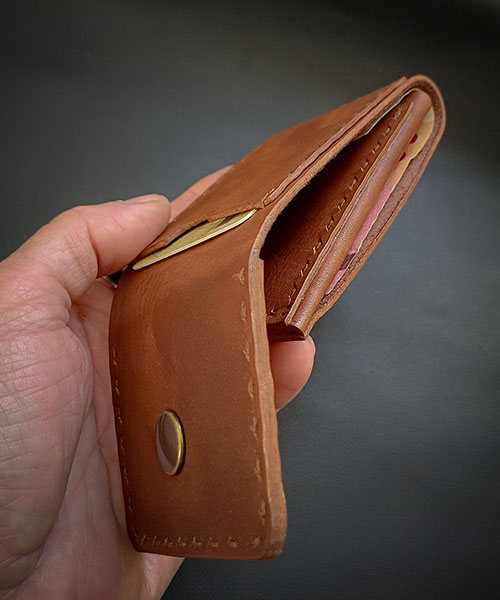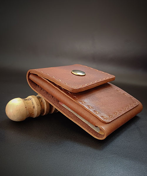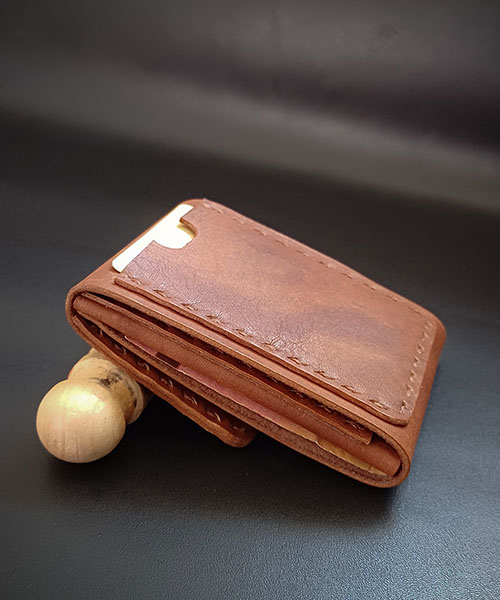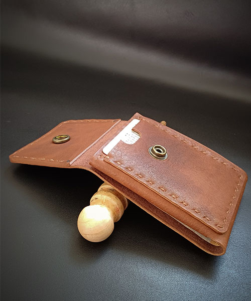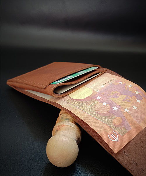 Ročno izdelana denarnica iz 100% govejega usnja, ponuja funkcionalnost. Zasnovana je s prostorom za kartici spredaj in zadaj, v notranjem delu pa je dodaten ločen prostor za bankovce in kartice. Zaradi majhnih dimenzij je idealna na potovanju kjer v njej ne želite drugega kot varno spravljena plačilna sredstva.